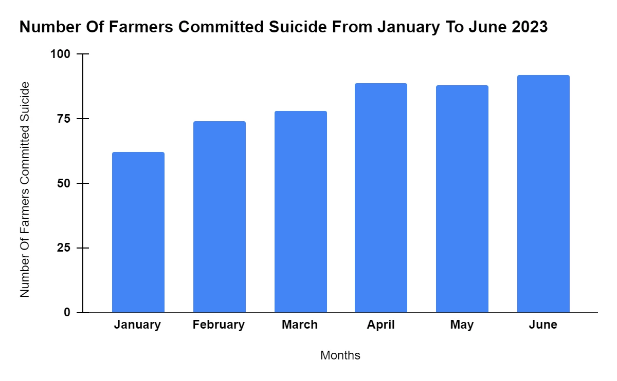With 62 cases in January, 74 in February, 78 in March, 89 in April, a minor decline to 88 in May, and 92 in June, the number of suicides among agricultural workers has steadily increased.