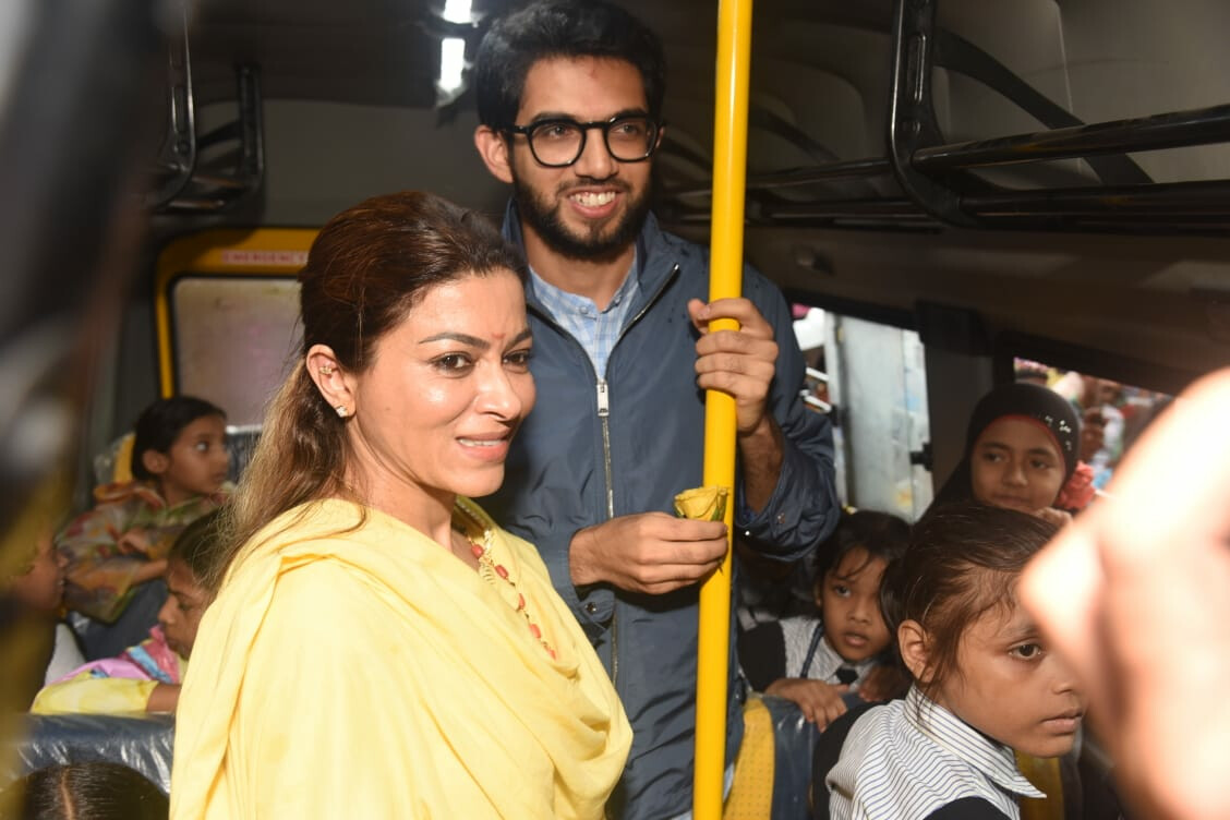 Yuva Sena chief Aditya Thackeray and Shree Sankalp Pratishthan charitable trust which is founded and helmed by Mumbai's   Sachin and Sangeeta Ahir inaugurated a school bus for girls attending Municipal schools in Worli amidst huge gathering. Aditya Thackeray was also seen enthusiastically interacting with the students at the gathering.