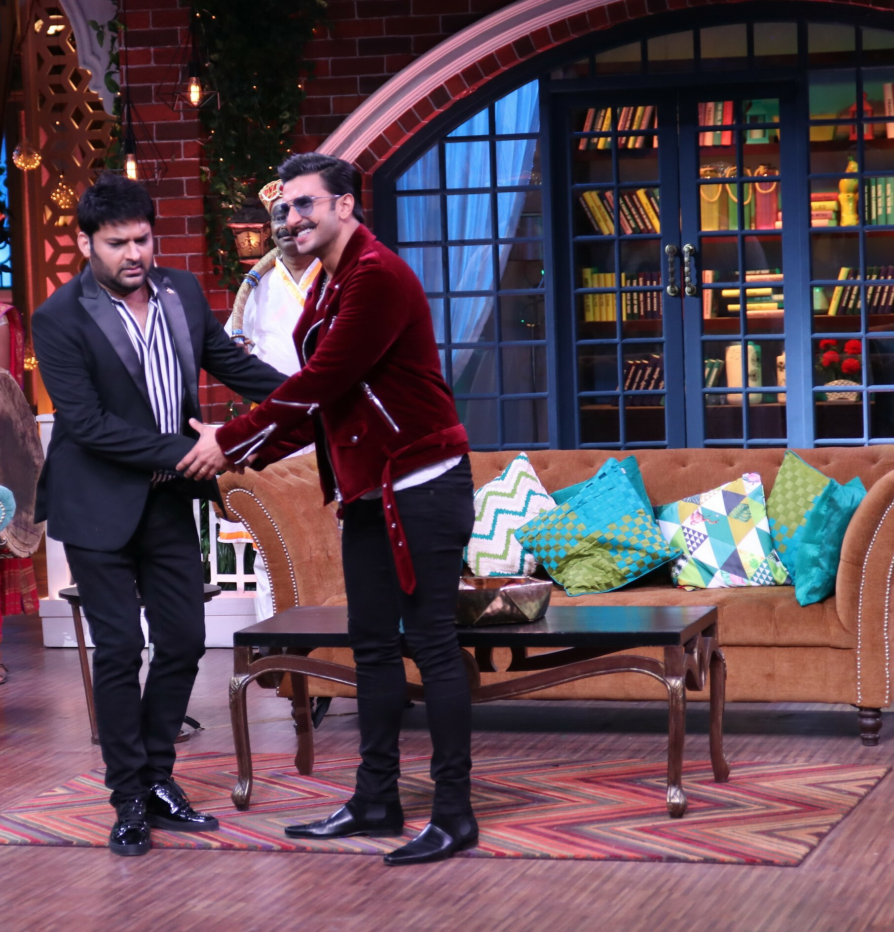 Ranveer wore a red velvet jacket for the shoot and when a jealous Kapil asked him if Deepika selected it for him, Ranveer agreed wholeheartedly. He said that it is Deepika who manages and decides his wardrobe - ‘I’m looking like a tempting ‘Red velvet cake today’