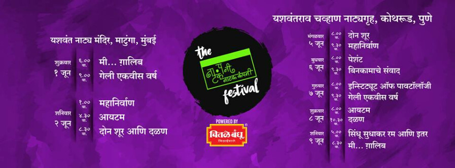 Natak company theatre festival will be held in two cities - Mumbai and Pune, in the first week of this month. The event will be first held in Pune on June 1 and 2, at Yashwantrao Natya Mandir and in Pune on June 5-9, 2018.