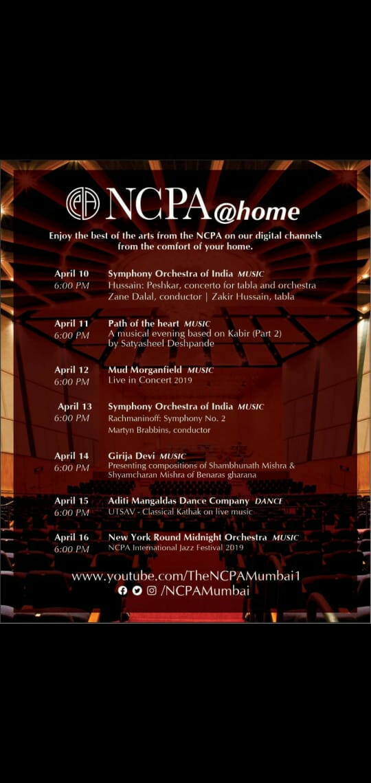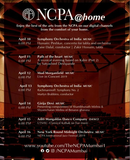 Speaking about this initiative, K N Suntook, Chairman, NCPA, and Co-founder, Symphony Orchestra of India, said, “Trust you have enjoyed the last week’s programme. We have curated another week of events for you. As an organisation dedicated to the performing arts, our aim is to keep the cultural diet of art lovers a healthy one in these difficult times. We are grateful for the support that we have received from the artistes in making this online endeavour possible.”