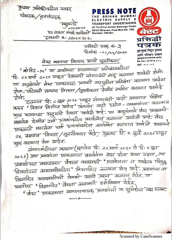 Besides this, the authorities at BEST have also decided to extend the validity of the passes for people who have not been able to use during the lockdown. A new receipt will be issued to these people mentioning the extended date of the validity.