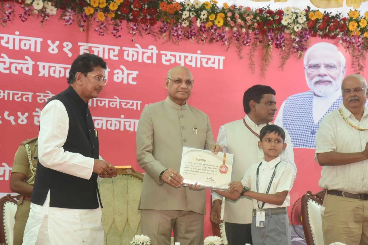 The Governor thanked the Prime Minister for including 56 railway stations and 192 Over bridges and underground passes in Maharashtra under the renovation project. The Governor also presented certificates to the winners of Drawing and Essay writing competitions.