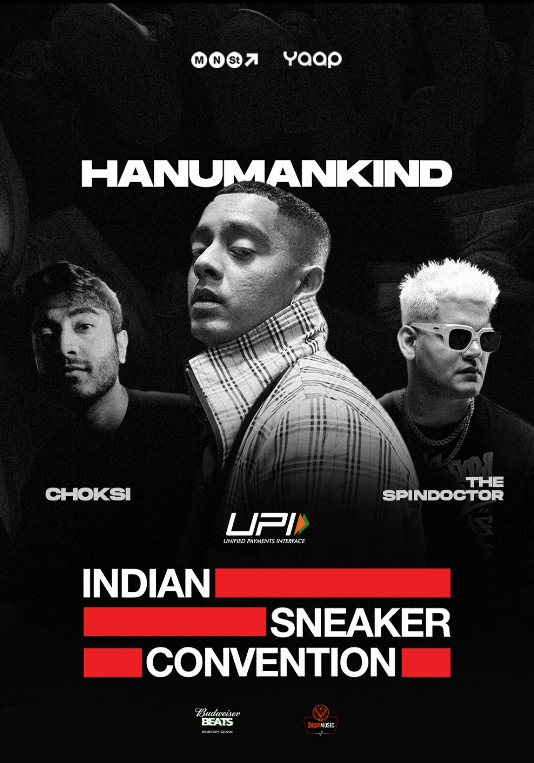Presented by UPI, Experiential Partner Monkey Shoulder, Fueled by Budweiser Beats and Ice Cold Shots Powered by Jagermeister, join in on the excitement around the ever-expanding sneaker culture, and get ready for a night full of electrifying entertainment like performances from some of the top artists like Hanumankind, Choksi and The Spindoctor; insightful panel discussions on all things sneaker culture and the awe-inspiring collection of over 3,000+ sneakers.