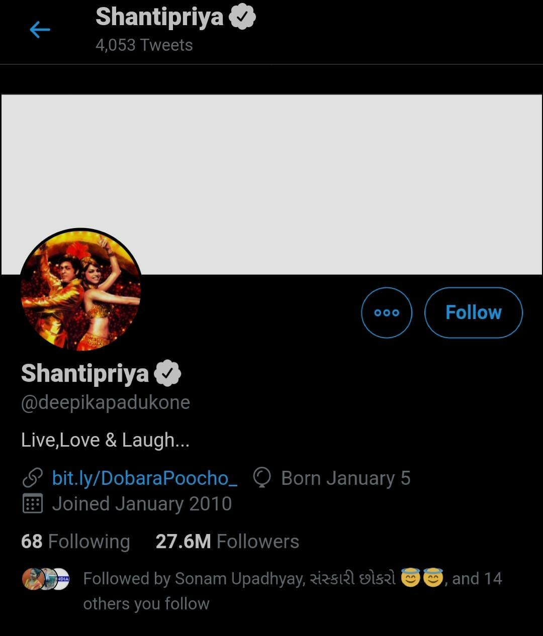 दीपिका पादुकोण (Deepika Padukone) ने सोमवार को अपनी डेब्यू फिल्म 'ओम शांति ओम' के 13 साल पूरे होने का जश्न मनाया है और अपने इंस्टाग्राम व ट्विटर के नामों को बदलकर 'शांतिप्रिया' कर दिया है जो फिल्म में उनके किरदार का नाम था।