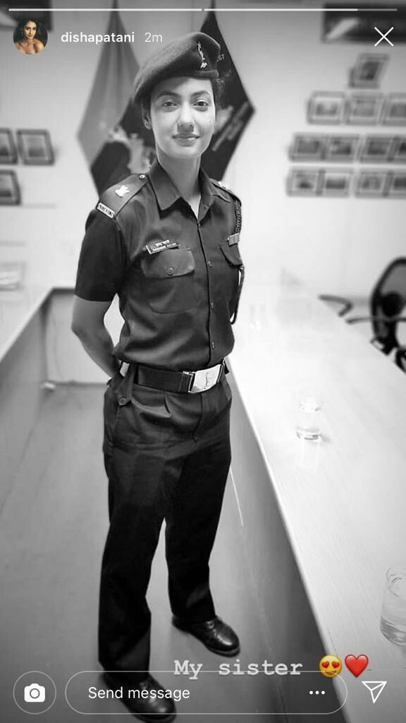 बॉलीवुड एक्ट्रेस दिशा पाटनी जोकि जल्द ही सलमान खान के साथ फिल्म 'भारत’ में नजर आने वाली हैं। उन्होंने अपनी बहन की तस्वीर सोशल मीडिया पर शेयर करते हुए उन्हें अपनो रोल मॉडल बताया है। दिशा की बहन आर्म फोर्स में कार्यरत हैं।