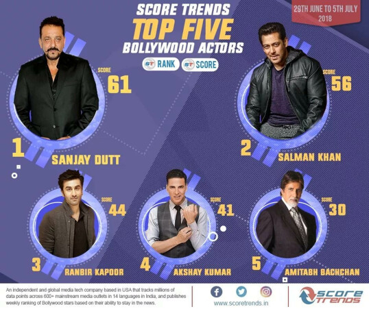 स्कोर ट्रेंड्स के सह संस्थापक अश्वनी कौल कहते हैं, फिल्म संजू के प्रमोशन के वक्त संजय दत्त के बारे में न्यूज प्रिंट, और डिजीटल दुनिया में काफी लिखा गया। सोशल मीडिया में भी काफी चर्चा हुईं। संजय दत्त की लोकप्रियता उनके बायोपिक को मिली सफलता से तो इतनी बढी है की, पिछले कई हफ्तों से लोकप्रियता के शिखर पर रहें सलमान खान को भी उन्होंने पिछे छोड़ दिया।