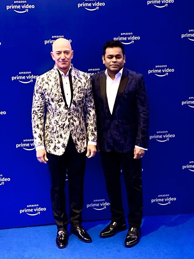फेमस सिंगर ए आर रहमान अमेजॉन के सीईओ, जेफ बेजोस के साथ आए नजर।