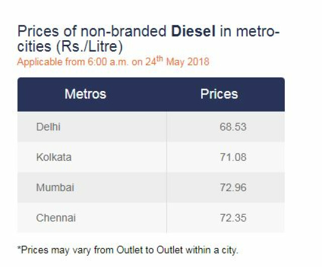 कर्नाटक चुनाव के मद्देनजर सरकारी तेल विपणन कंपनियों ने पेट्रोल-डीजल की कीमतों को 24 अप्रैल 2018 से अगले 20 दिनों तक अपरिवर्तित रखा था। जानकारी के लिए आपके बता दें कि 16 जून 2017 से ही पेट्रोल और डीजल की कीमतों में रोजाना संशोधन हो रहा है। इससे पहले सरकारी तेल विपणन कंपनियां ईंधन की कीमतों की महीने में दो बार समीक्षा किया करती थीं।
