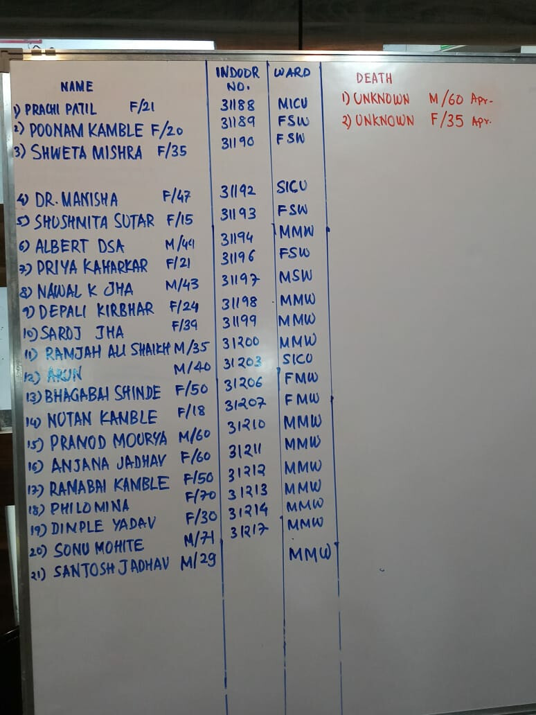 गोरेगांव के सिद्धार्थ अस्पताल में 2 लोगों को दाखिल किया गया है जिनकी स्थिति अब स्थिर है।