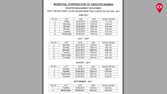 एक ओर जहां गर्मी से मुंबईकर परेशान है तो वही दूसरी तरफ मौसम विभाग ने चेतावनी दी है की इस बार बारिस औसत से ज्यादा होगी। साथ ही बारिश के दौरान 18 बार हाई टाइड होगा। जिसकी जानकारी बीएमसी डिजास्टर मैनेजमेंट ने दी है। दरअसल पिछलें कई दिनों से मुंबई में कम बारिश होने के कारण गर्मी काफी बढ़ गई है। जिससे ना ही सिर्फ आदमी परेशान है बल्की पक्षियों और पशुओं को भी भयंकर गर्मी का सामना करना पड़ता है।