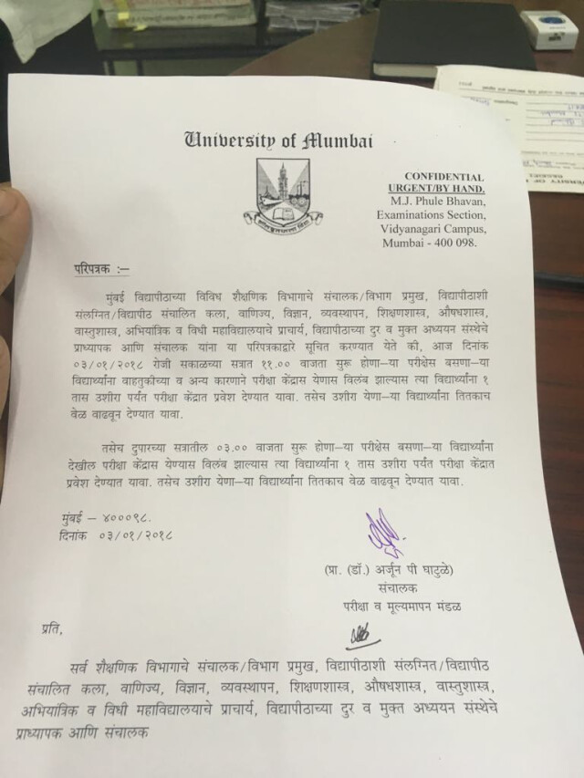 02.00pm- तीन बजे होनेवाली परीक्षा के लिए मुंबई विश्वविद्यालय ने जारी की नई सुचना