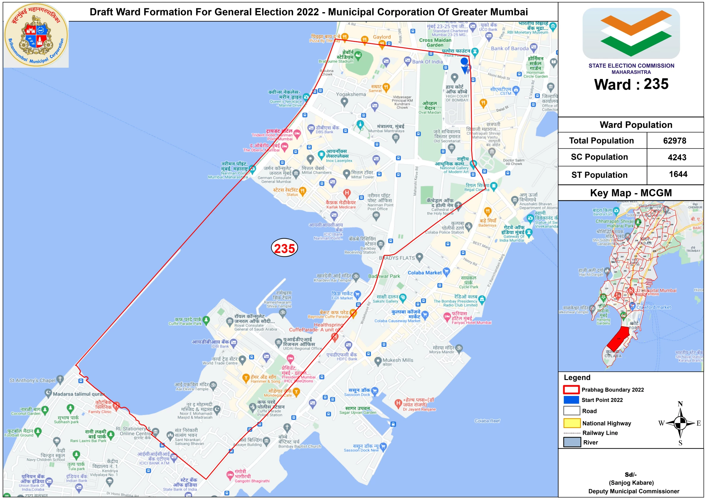 वार्ड नंबर 235 ( ब्रेबॉन स्टेडियम , बॉम्बे हाईकोर्ट , कफ परेड पार्क, कफ परेड पुलिस स्टेशन, मित्तल चेंबर्स और आसपास के इलाके)