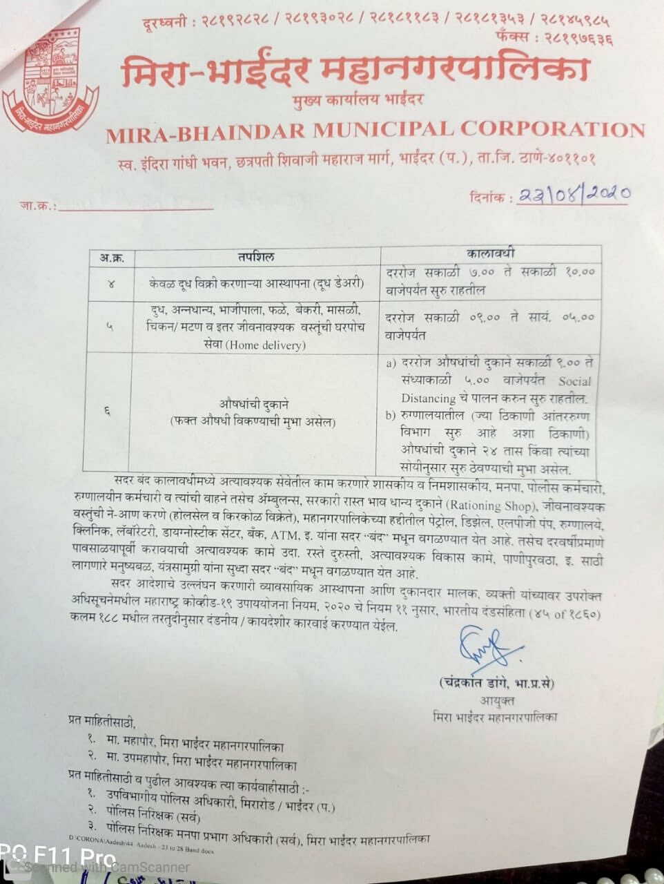 लगातार बढ़ रहे कोरोना वायरस (Coronavirus) के संक्रमण को रोकने के लिए मीरा-भायंदर म्युनिसिपल कॉरपोरेशन (MBMC)ने पूरी तरह बंदी को एक बार फिर 5 दिनों के लिए आगे बढ़ाया है। यानी कि अब 28 अप्रैल तक मीरा-भायंदर कि सभी दुकानें बंद रहेंगी। इस दौरान केवल मेडिकल दुकान खुली रहेंगी और दूध की दुकान सुबह 7:00 से 10:00 के बीच खुली रहेंगी।