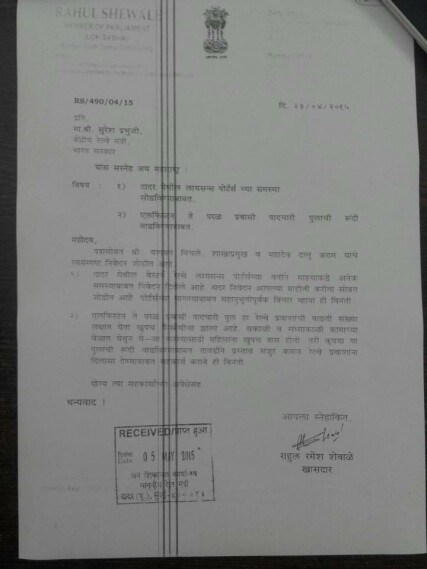 शिवसेना सांसद राहुल शिवाले ने 23 अप्रैल 2015 को सुरेश प्रभु को पत्र लिखकर फुट ओवरब्रिज को चौड़ा करने की मांग की थी, तो वही शिवसेना के ही सांसद अरविंद सावंत ने भी इस ब्रिज के चौरिकरण के लिए रेलवे मंत्री को पत्र लिखा।