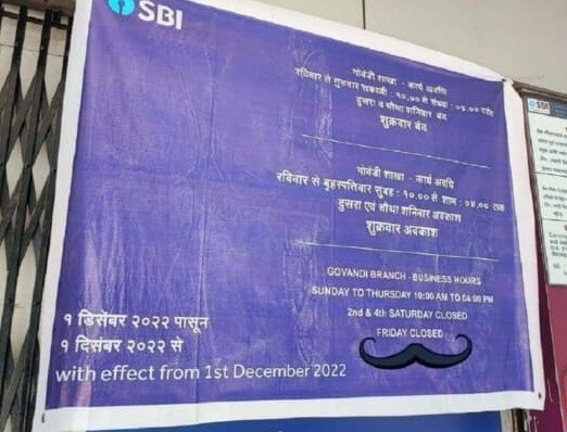 नोटिस के अनुसार, 1 दिसंबर से एसबीआई गोवंडी शाखा सभी शुक्रवार और महीने के दूसरे और चौथे शनिवार को बंद रहेगी।