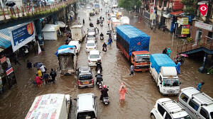 एक तो मुंबई की सड़क और ऊपर से भारी बारिश। सड़के पूरी तरह से जलमग्न हो जाने के कारण समुद्र बन गई। सड़क में बने गड्ढे नहीं दिख रहे थे जिससे वाहनों का आवागमन बेहद ही सुस्त रहा।