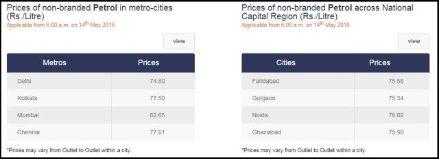 सोमवार को इंडियन ऑइल की आधिकारिक वेबसाइट के अनुसार, पेट्रोल की कीमत मुंबई में 82.65 रुपये तो डीजल की कीमत 70.43 रुपये पर पहुंच गई। सरकार ने जून 2010 में पेट्रोल की कीमत को अपने नियंत्रण से मुक्त कर दिया था और अक्टूबर 2014 में डीजल दरों को विनियमित कर दिया गया था।