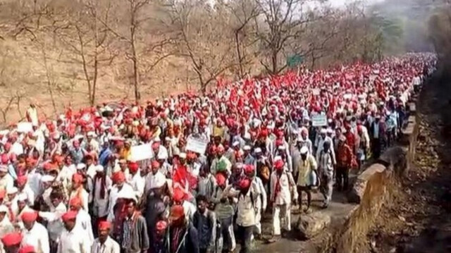 अपनी अलग अलग मांगो के लेकर लगभग 40 हजार किसान मुंबई आ रहे है। ऑल इंडिया किसान सभा के बैनर तले महाराष्ट्र विधानसभा का घेराव करने निकले क़रीब 40 हजार किसान अब मुंबई के क़रीब पहुंच चुके हैं। नाशिक से निकला महामोर्चा शुक्रवार को मुंबई की दहलीज पर पहुंच गया। भिवंडी तालुका के कांदली के पास स्थित वलकस फाटा पहुंच गया है। धीरे धीरे अब ये किसान ठाणे पहुंच गये है। 12 मार्च को ये किसान महाराष्ट्र विधानसभा का घेराव करेंगे।