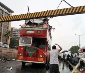 जानकारी के मुताबिक मुंबई में 'बेस्ट' की एक डबलडेकर बस हादसे का शिकार हो गई। हादसा उस समय हुआ जब ये डबलडेकर बस सांताक्रूज में जाम से बचने के लिए अपने तय रूट से दूसरे मार्ग पर जा रही थी। इसी दौरान सड़क पर बने ओवरहेड रेलिंग से इस बस की टक्कर हो गई। इस हादसे में कोई भी घायल नही हुआ।