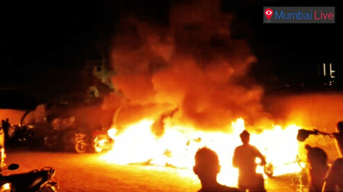 भांडुप - श्री राम इलाके में रविवार रात को 13 मोटरसाईकल और 2 कार में आi लगा दी गई। स्थानिय रहिवासी सड़क के किनारे ही अपनी गाड़ियां पार्क करते है। इस घटना के बाद इलाके के लोगों में भय बैठा हुआ है।