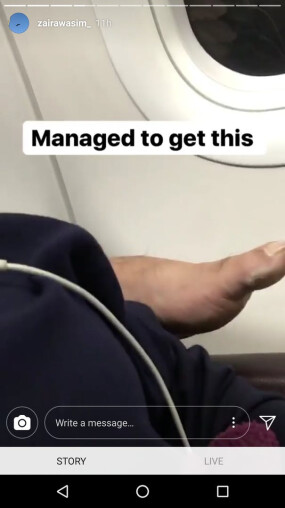 एक्ट्रेस ज़ायरा वसीम ने सोशल मीडिया के इंस्टाग्राम पर घटना का पूरा वीडियो पोस्ट किया है. इस वीडियो में साफ दिख रहा है कि उनके पीछे बैठे शख्स ने अपना पैर उनके आर्म रेस्ट की जगह पर रखा हुआ है।