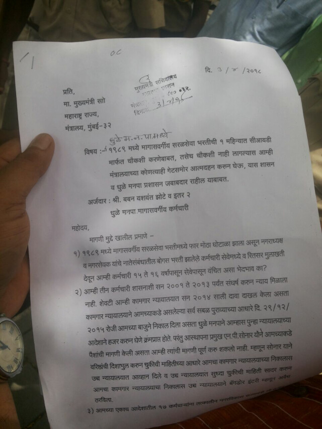 सोमवार दोपहर के 12 बजे के आसपास मंत्रालय के गेट के बाहर बबन यशवंत झोटे नाम के एक शख्स ने अपने उपर रॉकेल डालकर आत्महत्या करने की कोशिश की। बताया जा रहा है की ये शख्स धुले में रहता है और धुले नगरपालिका में कार्य करता है। हालांकी अभी तक इस बात का खुलासा नहीं हो पाया है की आखिरकार बबन ने आत्महत्या की कोशिश क्यो की? बबन नगरपालिका में कॉट्रेक्ट पर कार्यरत था और उसे निलंबित कर दिया गया था।