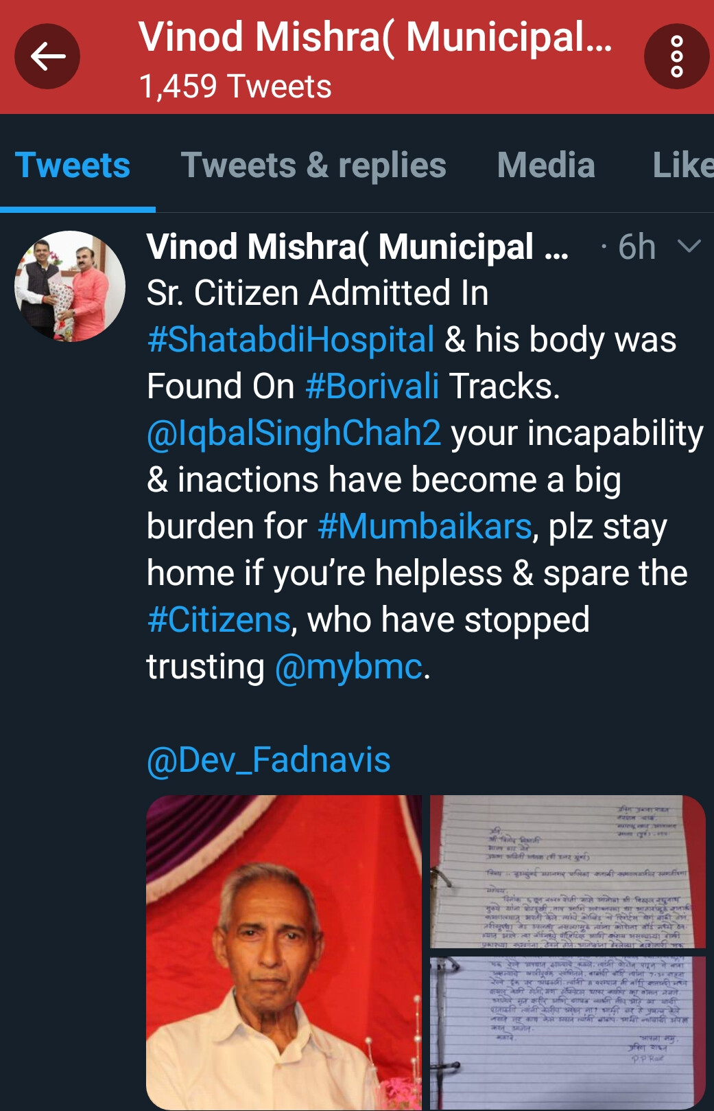सूत्रों के अनुसार मालाड में रहने वाले 80 वर्षीय इस मरीज का नाम विट्ठल मुले था, जिसे बीमारी के बाद शताब्दी हॉस्पिटल में दाखिल कराया गया था।