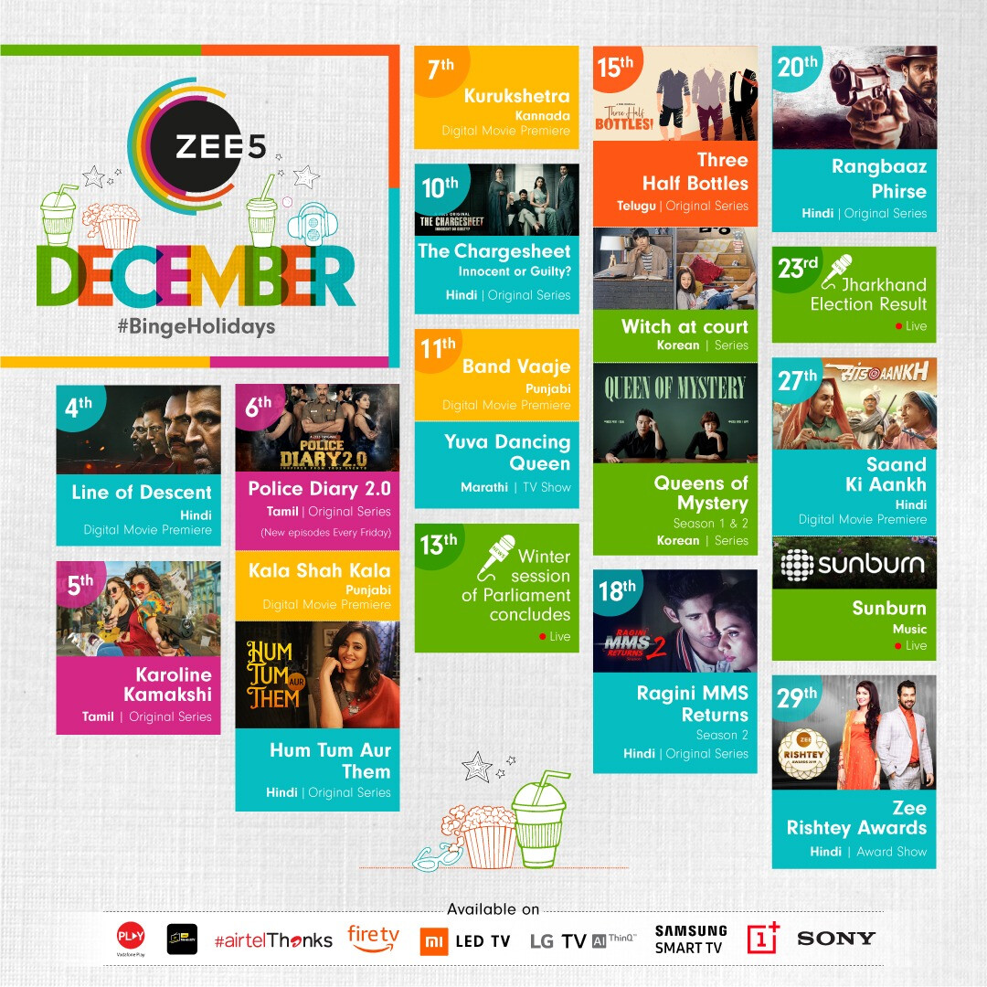 सभी शो और इस धमाकेदार लाइन-अप के साथ, ZEE5 ने दर्शकों के लिए वर्ष को समाप्त करने के लिए दिसंबर में एक एक्शन पैक योजना बनाई है।