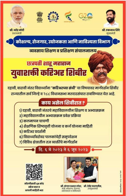 छत्रपति शाहू महाराज युवा शक्ति करियर कैंप का आयोजन बोरीवली पश्चिम के सैली इंटरनेशनल स्कूल में किया गया है और इसका उद्घाटन शनिवार, 3 जून को कौशल विकास, रोजगार, उद्यमिता और नवाचार मंत्री मंगल प्रभात लोढा करेंगे। (Chhatrapati Shahu Maharaj Yuva Shakti Career Camp on June 3 at Borivali West)