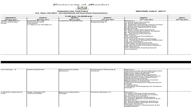 इंजिनिंयरिंग के सिविल इंजिनीयर, मेकैनिकल इंजिनियर, इलेक्ट्रीक इंजिनीयर, कम्पुटर इंजिनियर की परीक्षा पत्रक वेबसाईट पर अपलोड की है। इसजानकारी के अनुसार पहला पेपर 22 नवंबर को,दूसरा पेपर 28 नवंबर को , तीसरा पेपर 22 दिसंबर को रखा गया है। लेकिन विश्वविद्यालय के परिपत्रक के अनुसार तिसरा, चौथा और पांचवा पेपर जून 2017 में लिया जाएगा। तिसरा पेपर 4 नवंबर को , चौथा पेपर 11 जून को तो वही पांचवा पेपर 18 जून को लिया जाएगा, जो की परीक्षा पत्रक में गड़बड़ी को साफ दिखाई दे रहा है।