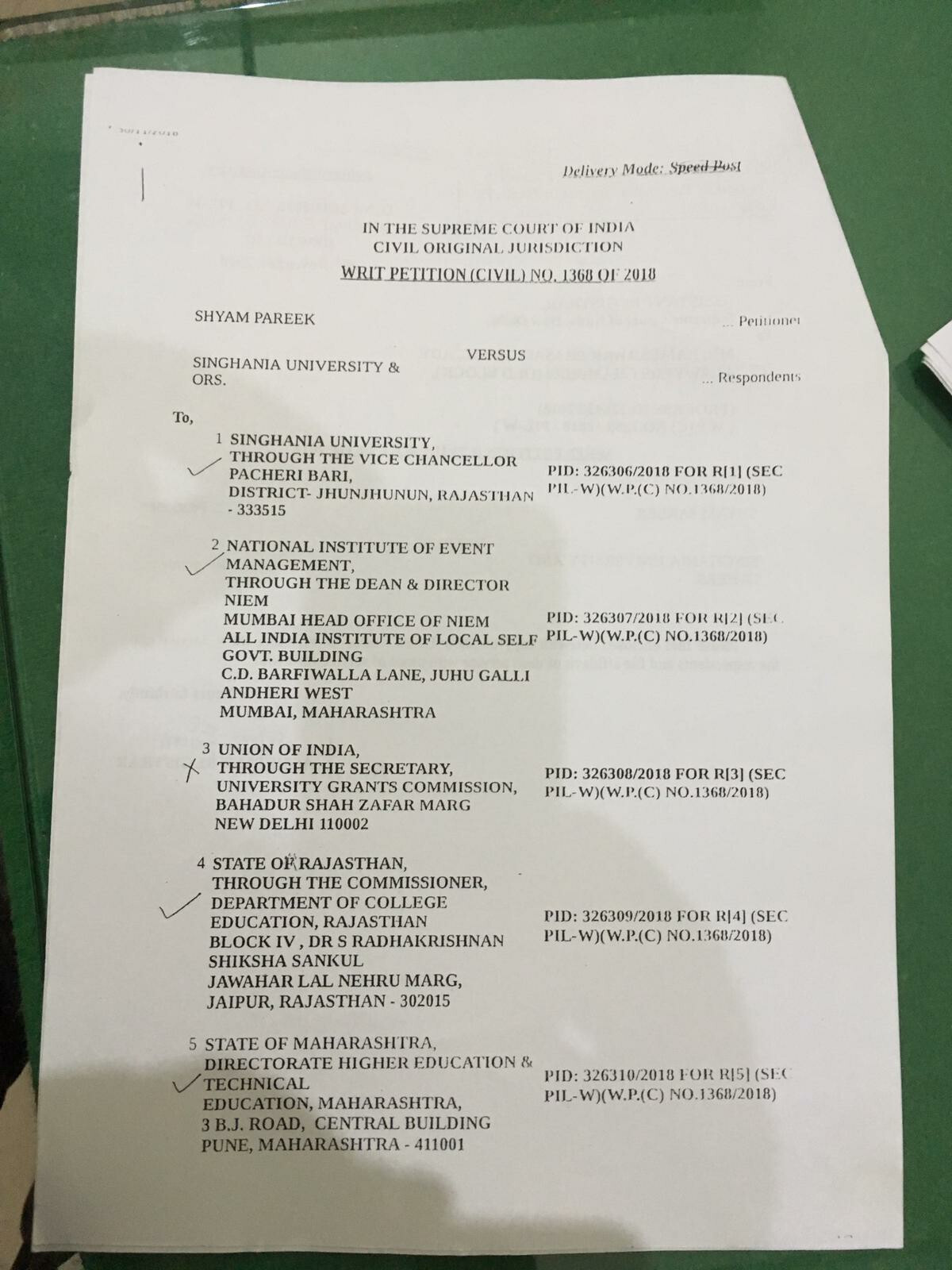 हमें तो मतलब है सिंघानिया यूनिवर्सिटी से।