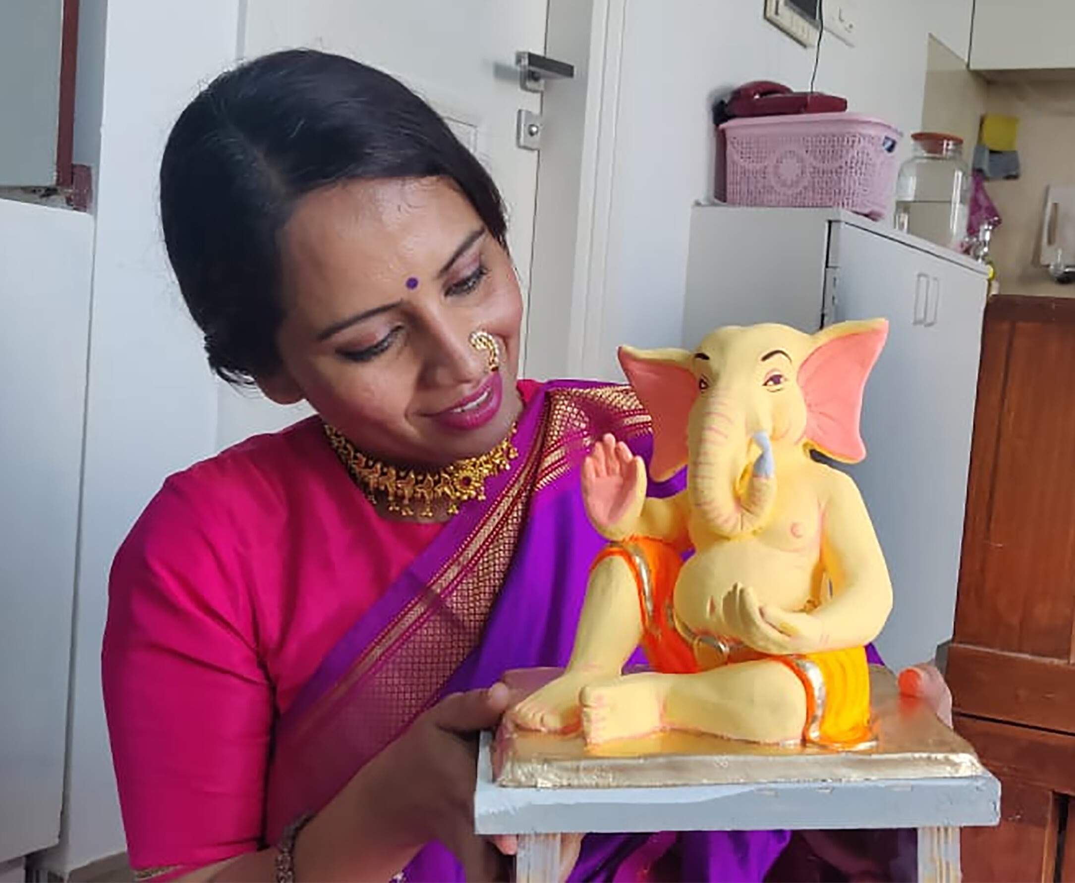 वह आगे कहती हैं, “मेरे पति बेहतरीन मुर्तियां बनाते हैं। मूर्तियों को अच्छे से पेन्ट भी करते हैं। फिर मैं, गणेश जी के लिए अलंकार और वस्त्र बनाती हूं। अपने हाथों से बने भोजन का भोग चढ़ाती हूं। हमारी मुर्ति की विशेषता होती हैं, यह मूर्ती बनाते वक्त हम उसमें बीज डालते हैं। इस गणेश मूर्ति का फिर हम घर में ही विसर्जन करते हैं। जिसके बाद जो पौधा खिल उठता हैं। उससे भगवान का आशिर्वाद हमारे साथ हमेशा के लिए रहता हैं, साथ ही पर्यावरण की भी रक्षा कर पातें हैं। मुझे लगता हैं, उत्सव मनाते वक्त नैचर का विनाश ना हो इस का हमें ध्यान रखना चाहिए।