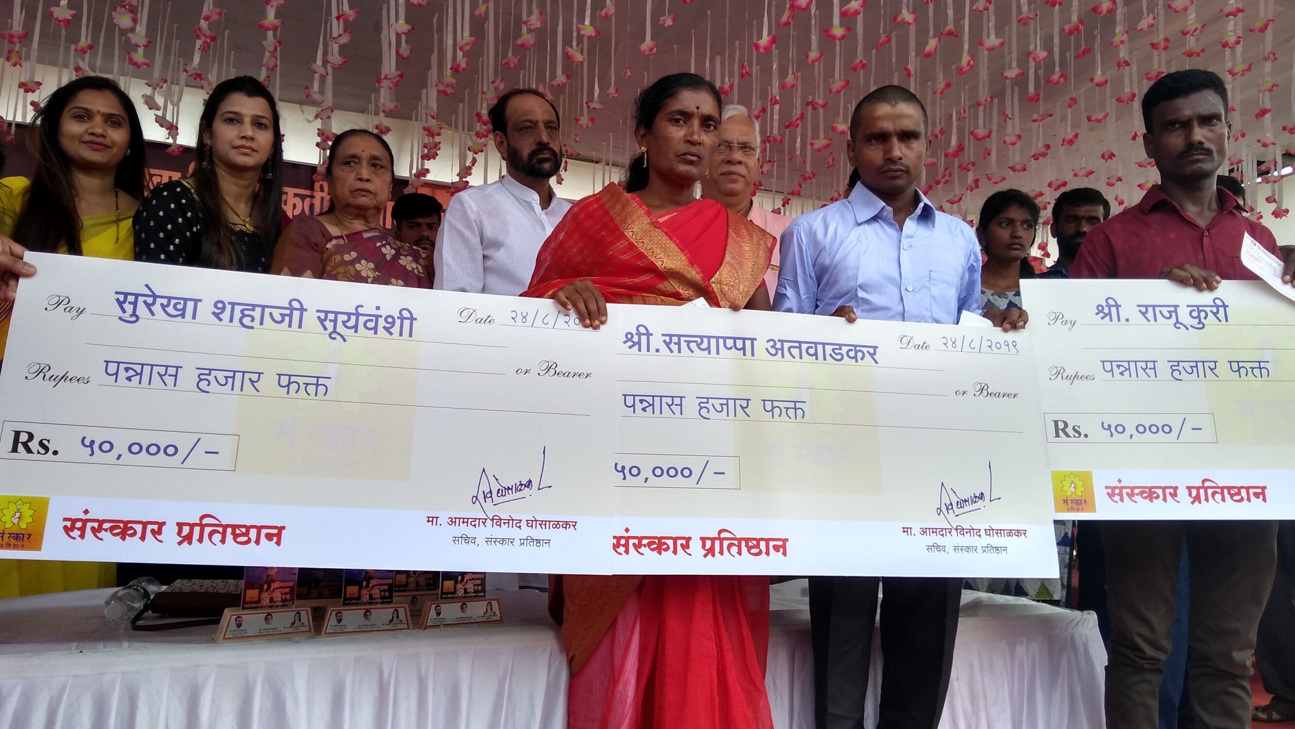 सांगली में रहनेवाली सुरेखा शहाजी सूर्यवंशी, कोल्हापूर के सत्यप्पा अतवाडकर और राजू कोरी को संस्था की ओर से 50-50 हजार रुपये की मदद की गई। इसके साथ ही उन्हें जरूरी राहत सामग्री भी दी गई। एन. एल. कॉम्प्लेक्स् मित्रमंडल की ओर से भी हर एक परिवार को 20 -20 हजार की भी मदद की गई।