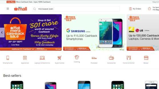 पेटीएम मॉल में कैशबैक