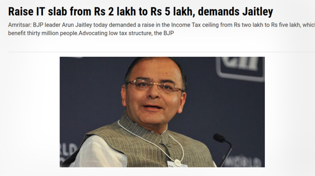 अब बात करते है बजट 2018 की, जहां विपक्ष में रहते हुए अरुण जेटली ने ये मांग की थी सरकार को 5 लाख तक की आय़कर में इनकम टैक्स फ्री होना चाहिए तो वही चार साल की बीजेपी की सत्ता में खुद अरुण जेटली ये नहीं कर पाये। बजट के बाद जेटली जी अलग अलग टीवी टैनलों पर बजट की बारिकियों को समझाते नजर आ रहे है लेकिन साहब को ये कौन बताये की जिस तरह से आपने विपक्ष में रहते हुए बड़े ही आसान भाषा में आयकर छूट की मांग की थी , उतनी ही आसान भाषा में आपने ये टैक्स की छूट क्यों नहीं दी?