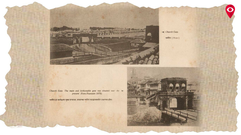 चर्चगेट उस समय शहर का मुख्य दरवाजा हुआ करता था। वर्तमान में फ्लोरा फाऊंटेन के सामने स्थित है।.