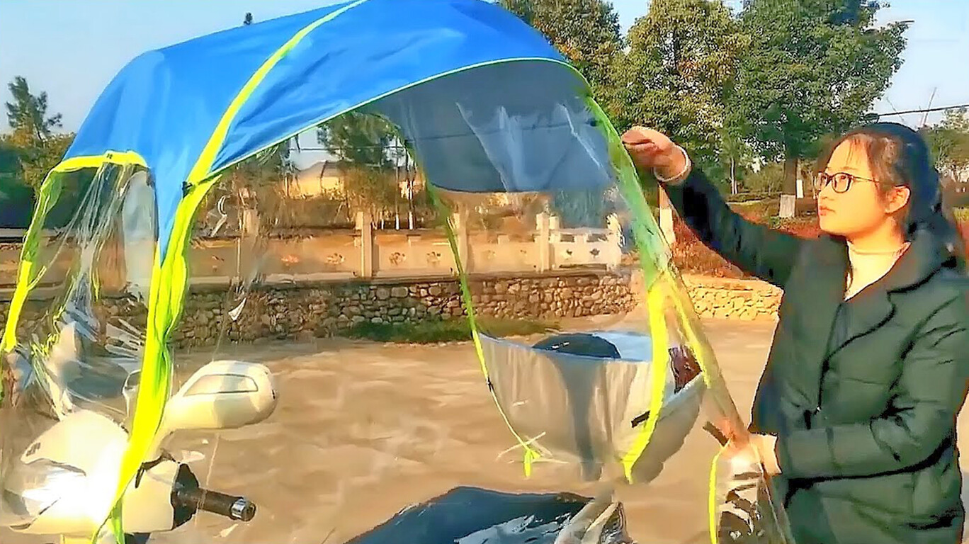 कवर को बाइक या स्कूटर पर आसानी से इन्स्टॉल किया जा सकता है, इनमें आगे और पीछे की तरफ ट्रांसपेरेंट पॉलीथिन होती है, वहीं ऊपर पैराशूट कपड़ा की रूफ होती है। ये बाइक या स्कूटर को सीट तक कवर कर लेता है। जिससे बारिश का पानी अंदर नहीं जाता। अगर बाइक में आपके पीछे कोई व्यक्ति बैठा है तो वह भी नहीं भीगेगा।
