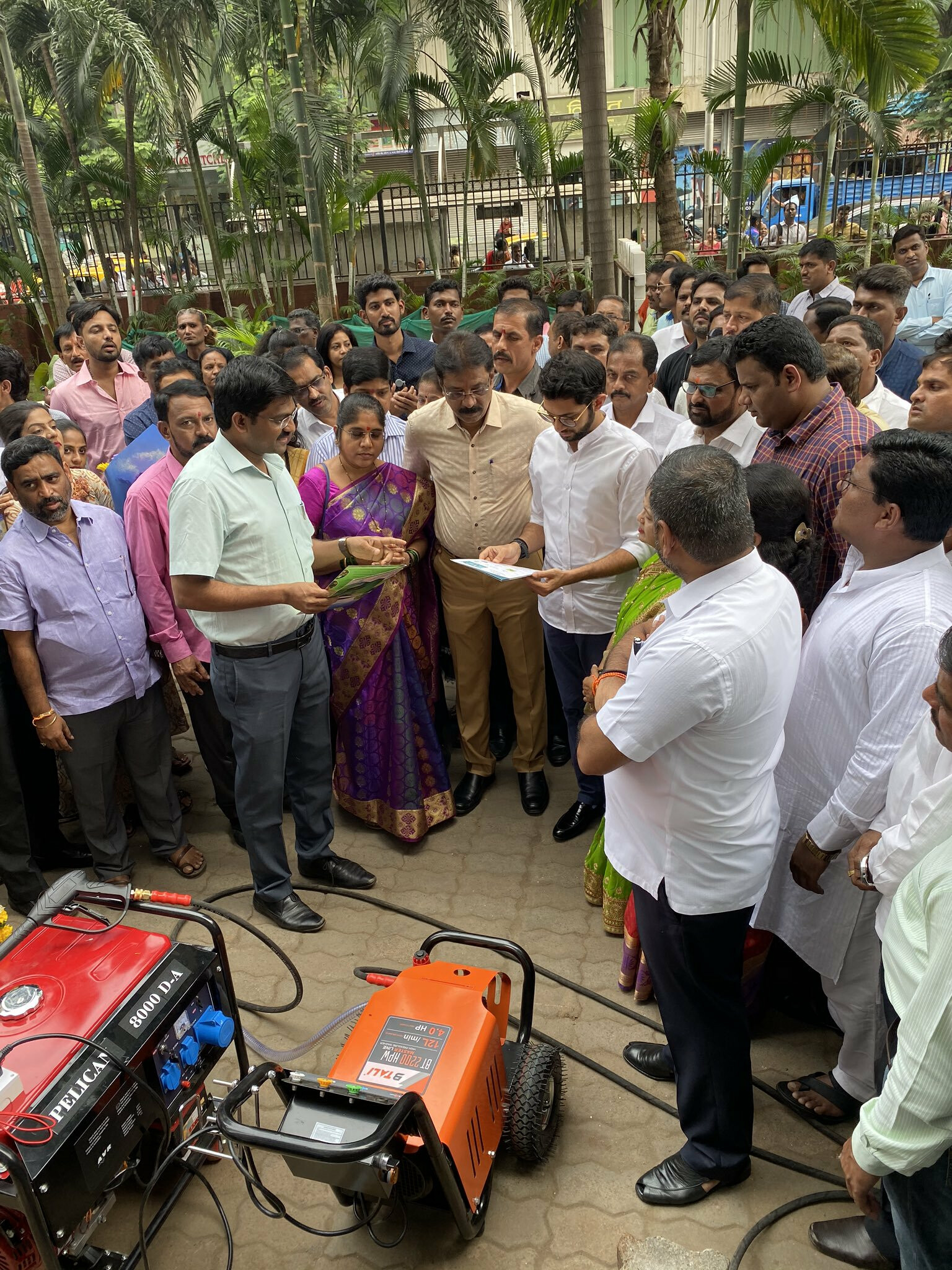 (फुटपाथ की सफाई के लिए हाई प्रेशर जेट मशीन का उद्घाटन करेत आदित्य ठाकरे)