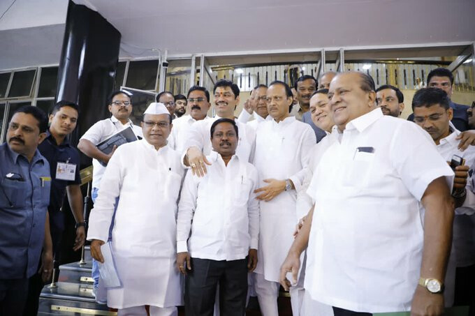 शरद पवार के भतीजे अजित पवार के विधानसभा पहुंचते ही सुप्रिया सुले ने उनके गले लगकर स्वागत किया। इस दौरान सुप्रिया ने अजित से कहा कि दादा बधाई, यह दिन अपने साथ बड़ी जिम्मेदारी भी लाया है। छगन भुजबल ने पार्टी प्रमुख शरद पवार से अपील की थी कि वह वरिष्ठ नेता अजित पवार द्वारा संगठन में दिए गए 'योगदान' को याद करते हुए उन्हें पार्टी में वापस आने के लिए मनाएं। हालांकि, शरद पवार और अन्य करीबियों द्वारा बहुत मान-मनौव्वल करने के बाद उन्होंने मंगलवार दोपहर को अपने पद से इस्तीफा दे दिया था।