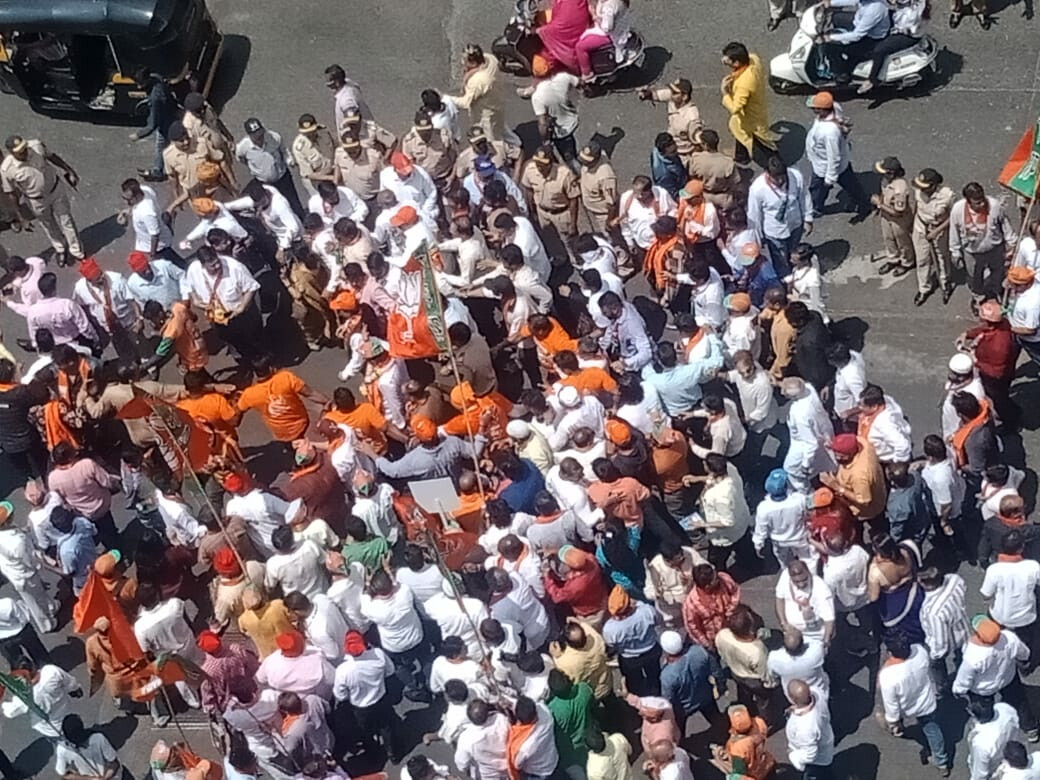 (नामांकन भरने के पहले सासंद गोपाल शेट्टी की रैली में शामिल लोग)