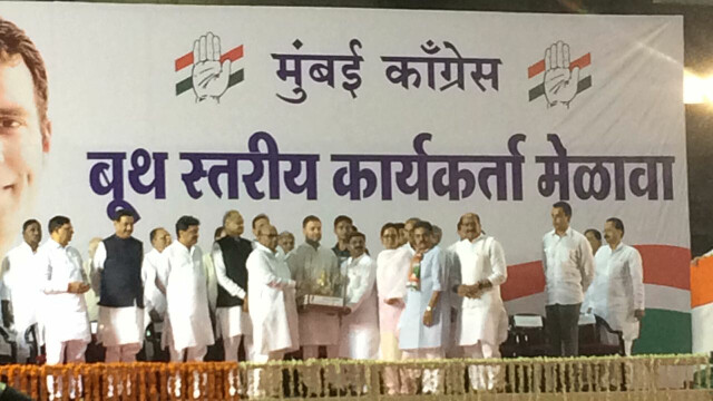 04:00 pm- मंच पर पूर्व सीएम पृथ्वीराज चव्हाण, अशोक चव्हाण, राधाकृष्ण विखे पाटिल, संजय निरुपम, कुमार केतकर, कृपाशंकर सिंह समेत कई नेता उपस्थित