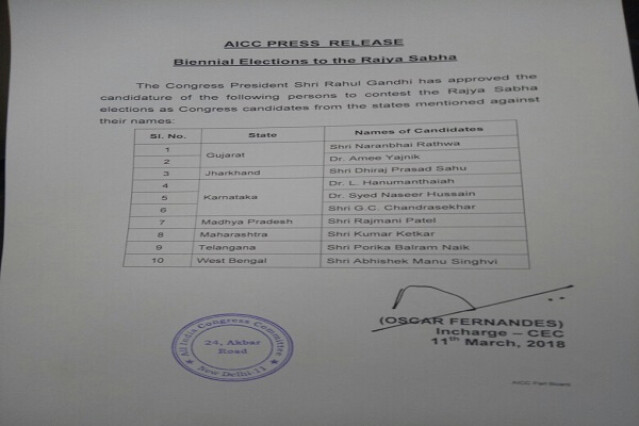 कांग्रेस पार्टी ने कुमार केतकर को महाराष्ट्र से राज्यसभा जाने का टिकट दिया है। इसके साथ ही पार्टी प्रवक्ता अभिषेक मनु सिंघवी पश्चिम बंगाल से चुनाव लड़ेंगे।