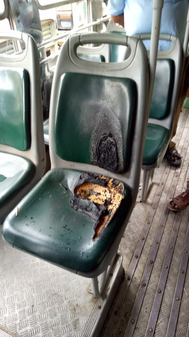 12.40pm- वाशी में बस की सीटों को जलाया गया
