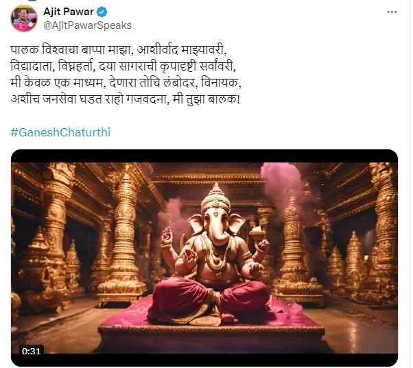 गणपति उत्सव के अवसर पर, अजित पवार और एनसीपी ने कल्याणकारी योजनाओं पर आधारित एक एनिमेटेड वीडियो साझा किया, जिसमें माजी लड़की बहिन योजना का जिक्र किया गया, जिसके तहत महिलाओं को 1500 रुपये की सहायता दी जाती है, और 1.6 करोड़ से अधिक लाभार्थियों ने पहले ही किस्त प्राप्त कर ली है। इसके अलावा अन्नपूर्णा योजना के तहत 52 लाख घरों को मुफ्त सिलेंडर मिल रहे हैं, और इन योजनाओं का श्रेय गणपति बप्पा को दिया गया है। 8 सितंबर को एनसीपी ने एक नया प्रचार गीत – ‘दादाचा वादा’ लॉन्च किया, जिसे एक दिन में 1 करोड़ से अधिक व्यूज मिले। कुछ हफ्ते पहले, अजित पवार ने एक नया प्रचार गीत – 'काम करत आलोय, काम करत रहणार' लॉन्च किया था, जिसे सोशल मीडिया पर कुछ ही दिनों में 75 लाख से अधिक व्यूज मिले थे।