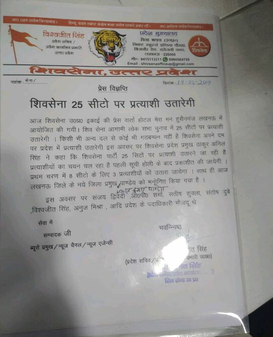 शिवसेना ने पिछली बार गृहमंत्री राजनाथ सिंह के खिलाफ चुनाव नहीं लड़ा था। लेकिन इसबार वह उनकी लोकसभा सीट लखनऊ से भी चुनाव लड़ने की तैयारी में है।