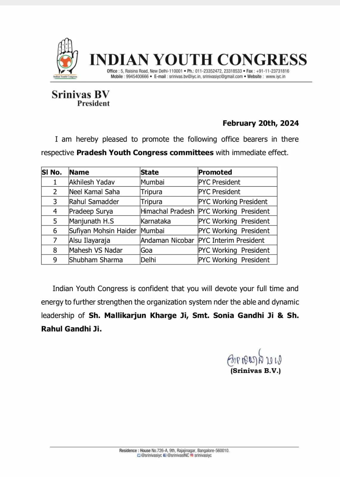 हाल ही में कांग्रेस के पूर्व वरिष्ठ नेता बाबा सिद्दीकी ने कांग्रेस का दामन छोड़ एनसीपी अजीत पवार गुट का हाथ पकड़ लिया था। जिसके बाद अब कांग्रेस ने उनके विधायक बेटे पर कार्रवाई की है। कांग्रेस ने विधायक ज़ीशान सिद्दीकी को मुंबई यूथ कोंग्रेस के अध्यक्ष पद से हटा दिया है। अखिलेश यादव को नया अध्यक्ष बनाया गया है। (Zeeshan Siddiqui removed from the post of Mumbai Youth Congress President)