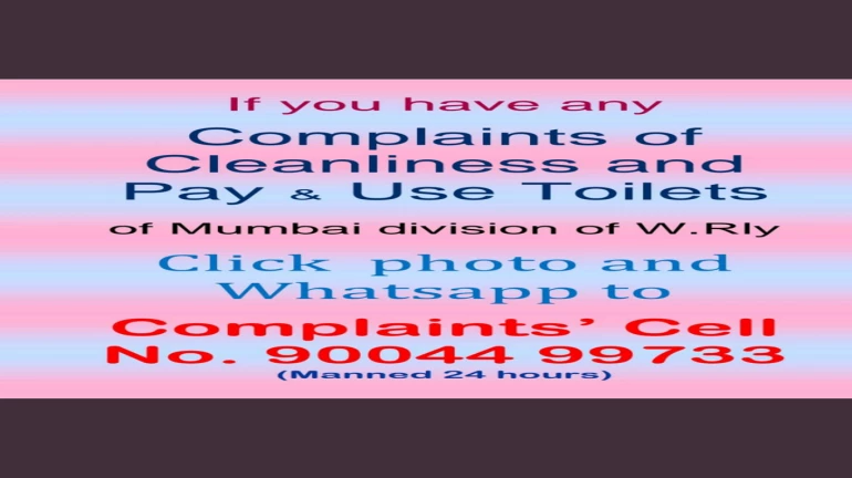 अकसर रेलवे के शौचालयों को गंदगी और बीमारी का घर माना जाता है। लेकिन मुंबई के पश्चिम रेलवे की यह तस्वीर जल्द ही बदलने वाली है। पश्चिम रेलवे ने एक वाट्सअप नंबर जारी किया है जिसके तहत कोई भी यात्री फोटो भेज कर शौचालय के गंदगी खिलाफ शिकायत दर्ज करा सकता है।
