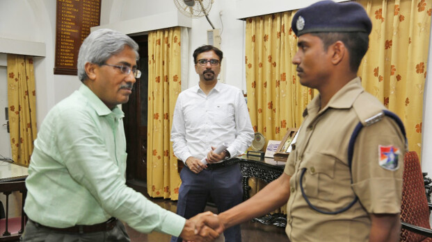 कांजुरमार्ग रेलवे स्टेशन पर एक महिला यात्री की ट्रेन से उतरते समय साड़ी दरवाजे पर फंसने के बाद महिला नीचे गिर गयी थी, महिला के साथ कुछ भी अनहोनी हो सकती थी अगर उसकी जान आरपीएफ कॉन्स्टेबल राजकमल यादव ने अपनी जान पर खेल कर नहीं बचाई होती तो। अब इस आरपीएफ जवान को रेलवे मैनजर ने 5000 रूपये का नगद इनाम और प्रशस्तीपत्र देकर सम्मानित किया है।