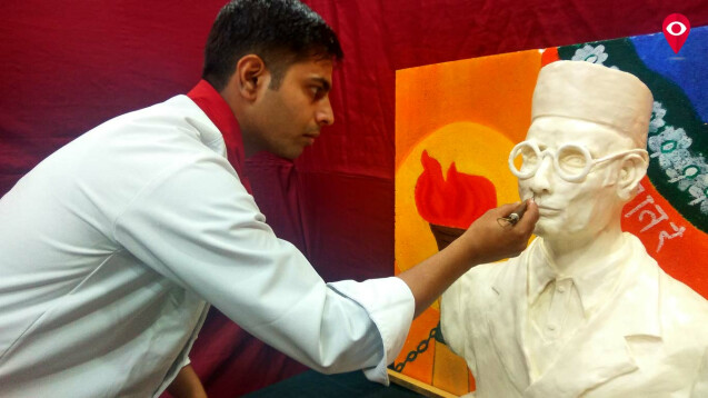 स्वातंत्र्यवीर सावरकरांच्या 134 व्या जयंतीनिमित्त दादरच्या सावरकर स्मारकात सावरकरांचे तब्बल 3.6 फूट उंचीचे शिल्प बटरपासून साकारण्यात आले आहे. या शिल्पासाठी 3 कलाकारांनी (शेफ) 21 मे पासून 28 मे पर्यंत बटरपासून हे शिल्प घडवले आहे.